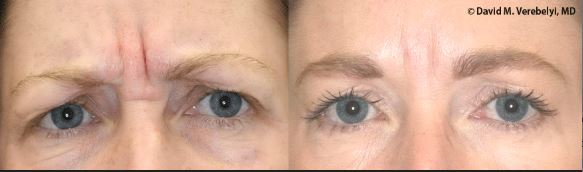 • Glabellar Frown Lines: Soften vertical “11” lines between brows for a more approachable appearance.