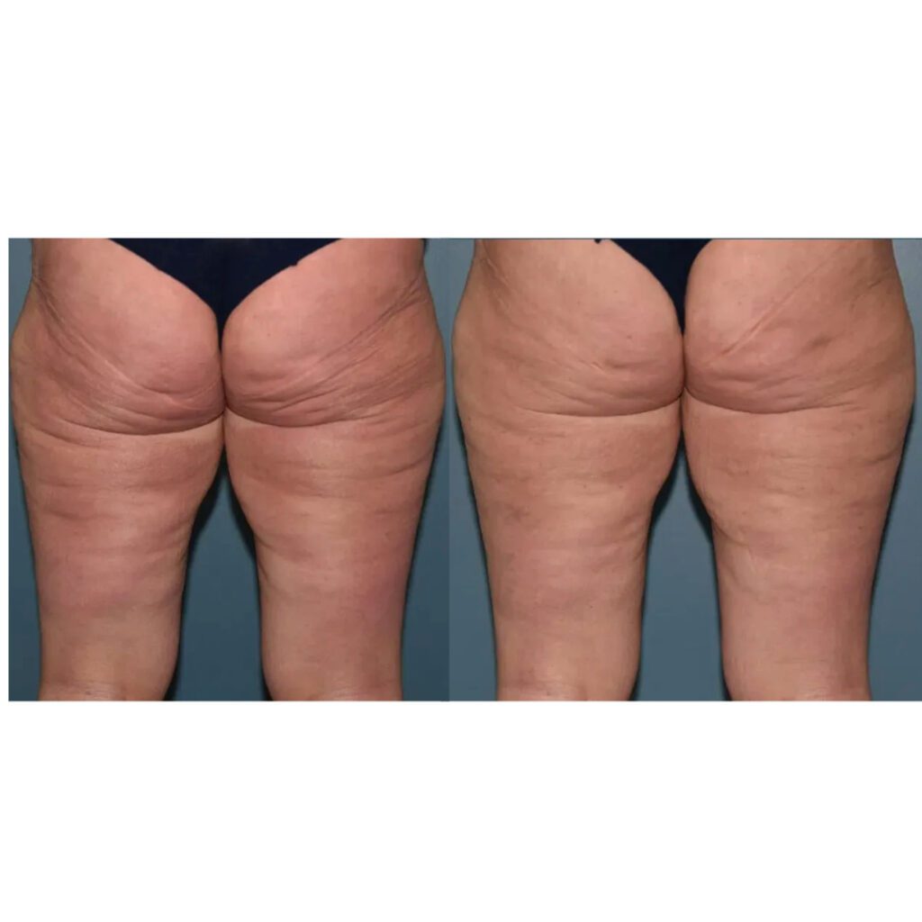 - Dimpled cellulite on buttocks and thighs